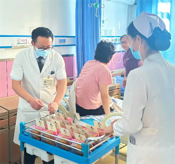 当患者与家属感受节日关怀的同时,医院各科室的值班医护人员也收到了专属慰问。中秋假期,为保障患者诊疗需求,许多医护人员主动放弃与家人团聚的机会,坚守在诊疗、护理一线。