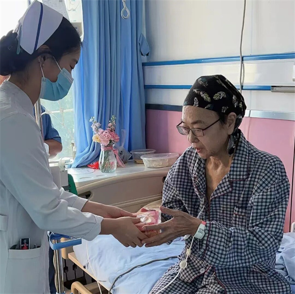 每一份礼盒的传递都伴随着轻声的问候与真挚的祝福。医护人员不仅送上礼物,还耐心询问患者的病情变化、饮食睡眠情况,叮嘱家属注意陪护休息——小小的病房里,月饼的香甜与温情的话语交织,驱散了疾病带来的阴霾,也让中秋的团圆感在医患之间悄然流淌。
