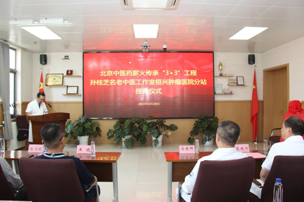 阳光正好,微风不燥。2024年8月20日下午,“北京中医药薪火传承“3+3”工程孙桂芝名老中医工作室北京市朝阳区桓兴肿瘤医院分站授牌仪式在桓兴第一会议室隆重举行,本次授牌仪式由门诊部王岩主任主持。