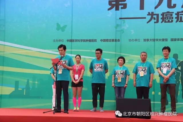 9月16日上午,我院200余员工在丁剑院长、高建川副院长的带领下,像往年一样带着我们的爱心来到了由中国医学科学院肿瘤医院、中国癌症基金会主办;加拿大驻华大使馆、国家体育总局人力资源开发中心、朝阳区卫生和计划生育委员会协办的第十九届“北京希望马拉松——为癌症患者及癌症防治研究募捐义跑”的活动现场。