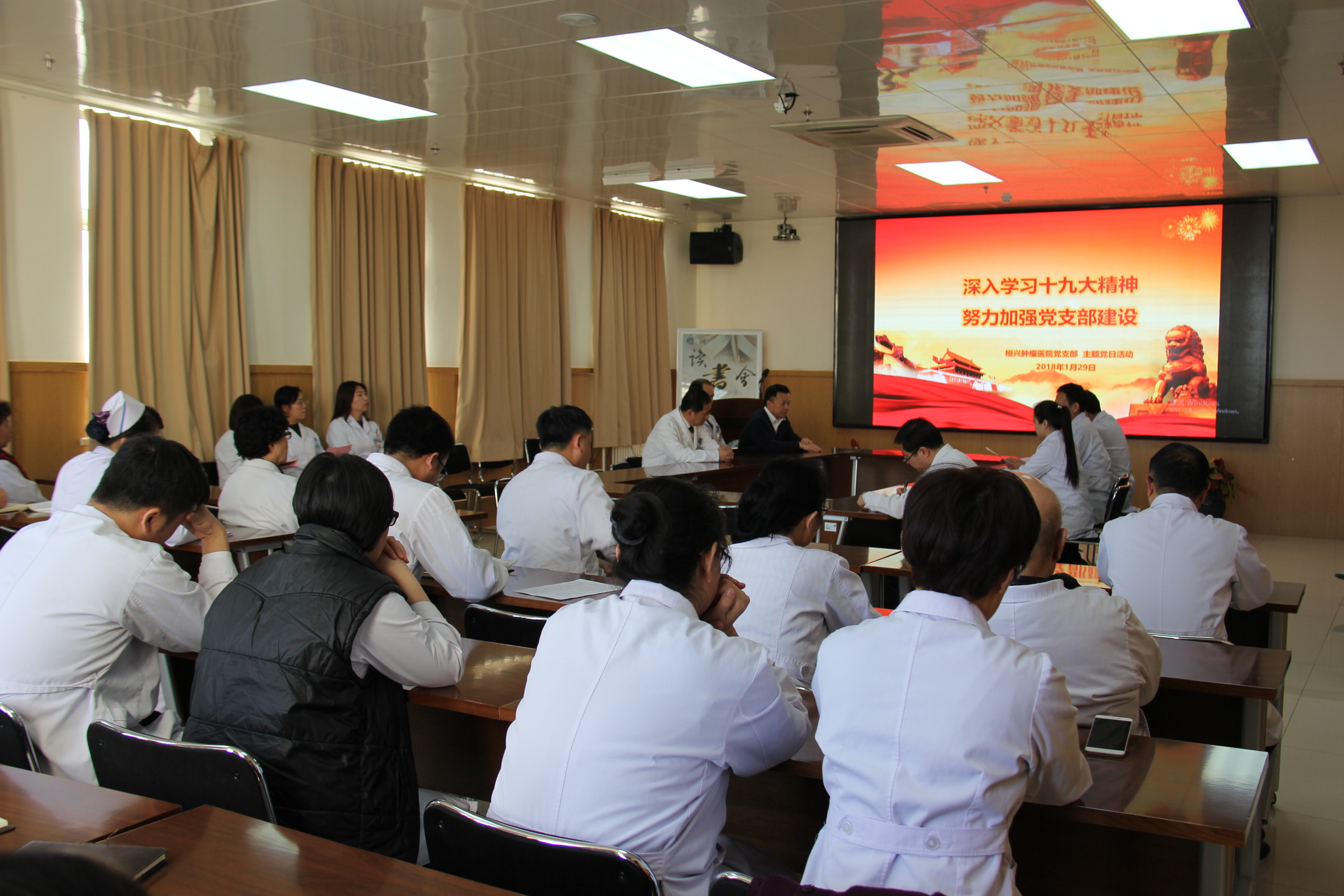 为深入学习贯彻党的十九大精神,落实卫计委党委关于基层党支部开展主题党日活动相关部署,桓兴肿瘤医院党支部于2018年1月29日中午12:00在第一会议室召开了新一年度首次主题党日活动,此次活动主题为“深入学习十九大精神,努力加强支部建设”。