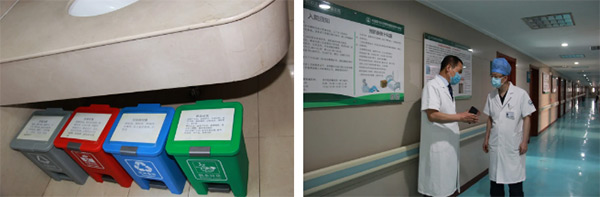 我院在接收到朝阳区卫健委加强院内垃圾分类管理要求,由院感办牵头指导院内保洁、各科室人员学习垃圾分类内容和相关文件,并在院内和各个病房放置4种不同的垃圾分类桶。