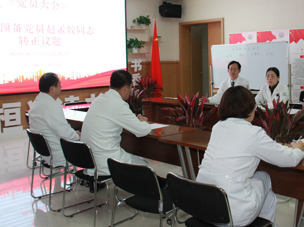 第一个环节是讨论预备党员赵孟姣同志按期转正议题。