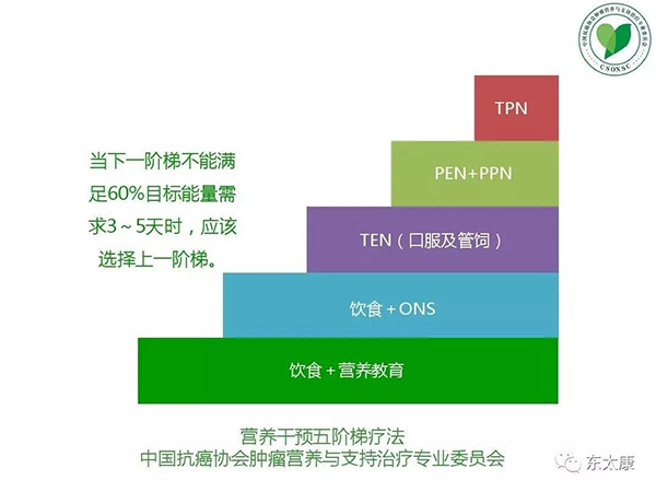 国际上和国内目前比较具有共识的就是这个营养不良的五阶梯治疗模式的推荐。