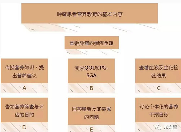 饮食+营养教育:肿瘤患者营养教育是一项经济、实用而且有效的措施。国外研究指出个体化的膳食营养咨询或教育,无论是否补充营养剂,都可以有效地预防抗肿瘤治疗引起的体重丢失,患者能量及蛋白质摄入显著增加,治疗期间不良事件(重度消化道反应、骨髓抑制、感染、褥疮等)发生率显著减少,改善营养状况,提高生活质量,从而保证治疗的顺利进行。生存时间显著延长。