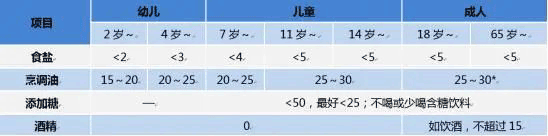 附件:中国居民膳食指南(2022版)低盐饮食的推荐及实践应用:不同人群食盐、烹调油、添加糖的推荐摄入量和酒精的控制摄入量(单位:g/d)