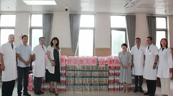 近日北京市已进入夏季高温季节,为有效预防和控制一线职工中暑事件,降低高温天气对职工的身体健康危害,7月11日下午,北京市朝阳区卫健委工会刘政华主席、刘玚副主席、阚旭、韩颖一行四人莅临北京市朝阳区桓兴肿瘤医院,开展“夏季送清凉”慰问活动,并为我院一线工作人员送来慰问品。院领导、党支部、工会及部分科室负责人参加慰问座谈会。